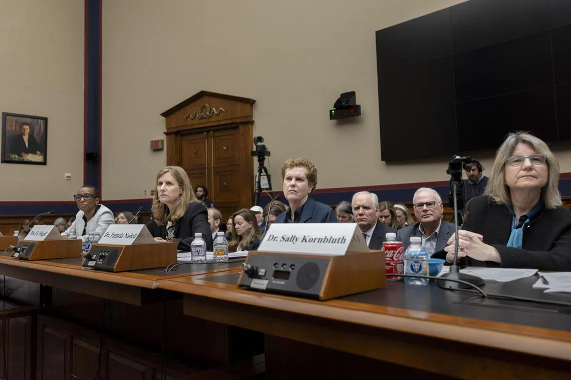 (From left) Professor Claudine Gay of Harvard, Professor Elizabeth Magill of the University of Pennsylvania, Professor Pamela Nadell of American University and Dr Sally Kornbluth of the Massachusetts Institute of Technology, at a House Committee on Education and the Workforce hearing on Dec 5, 2023.
