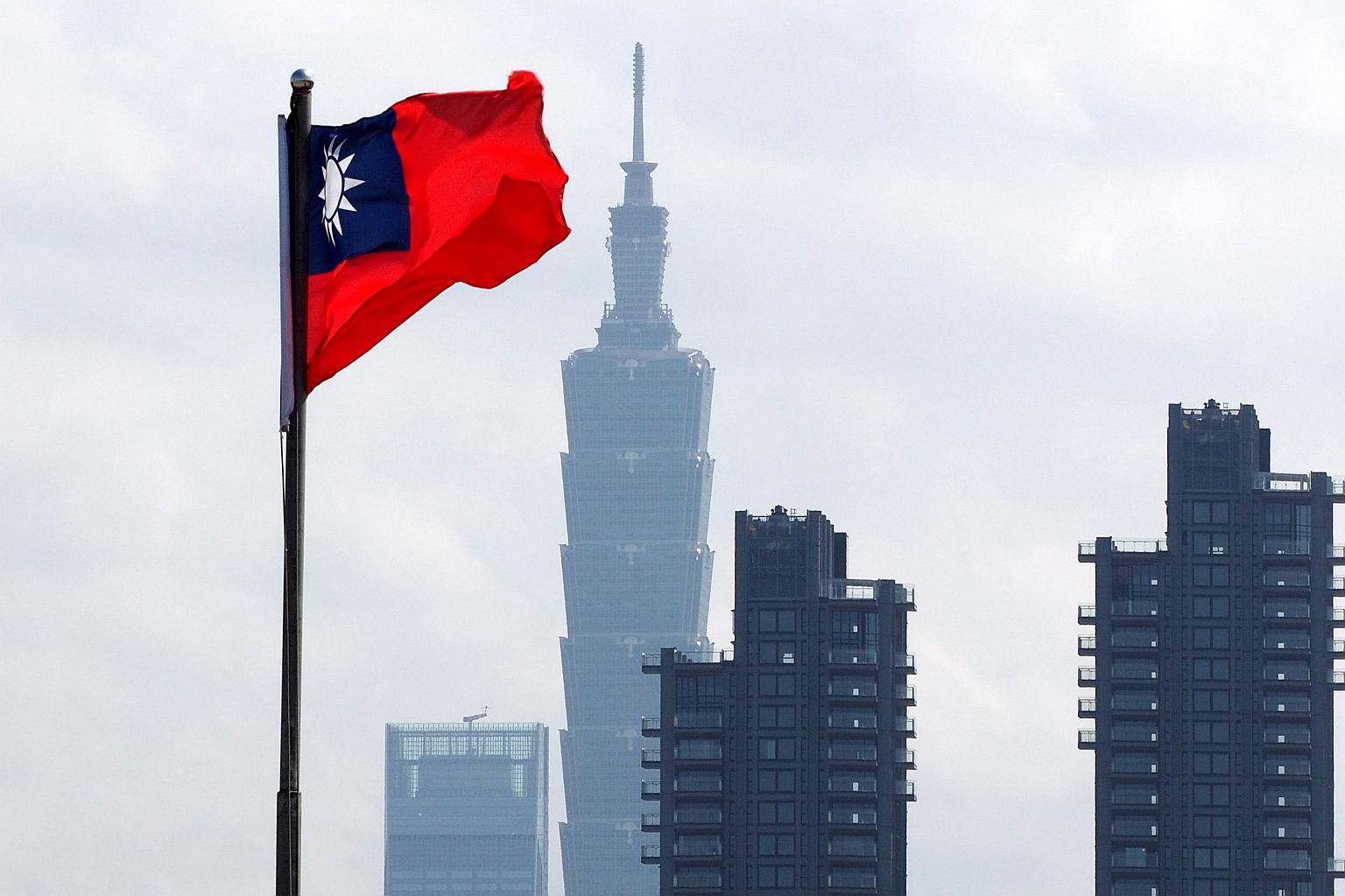 Taiwan's national flag flies in front of the Taipei 101 skyscraper in Taipei, Taiwan on March 1, 2018.