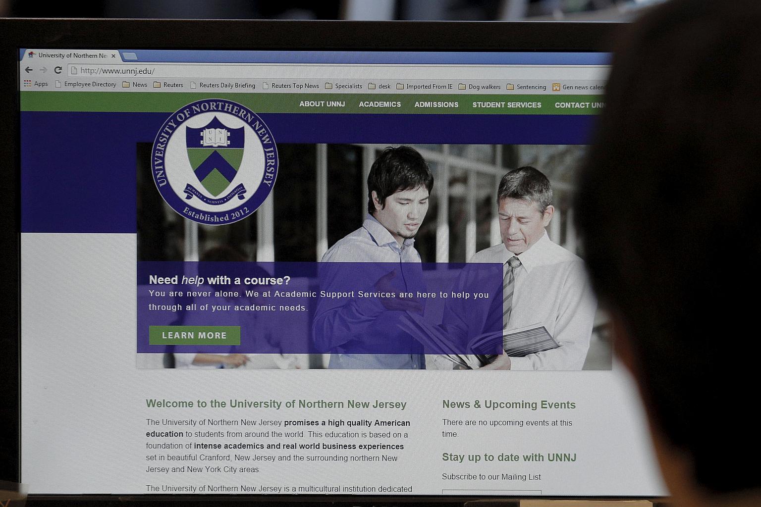 The website for the phony University of Northern New Jersey.