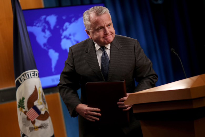 Acting US Secretary of State John Sullivan concludes his remarks on the release of the 2017 Country Reports on Human Rights Practices at at the US Department of State in Washington, DC, on April 20, 2018.