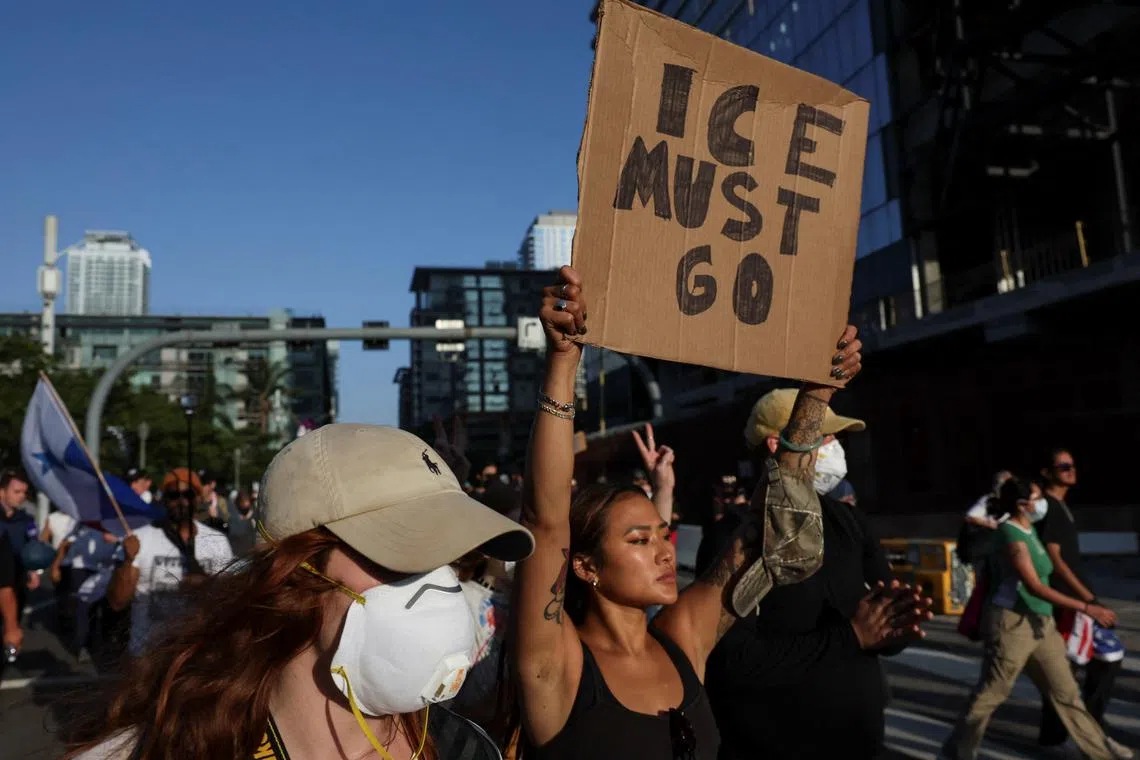 Protests have also taken place in other cities, including New York, Atlanta and Chicago, where demonstrators shouted at and scuffled with officers. Some protesters in Chicago climbed onto the Picasso sculpture in Daley Plaza, while others chanted that ICE should be abolished.