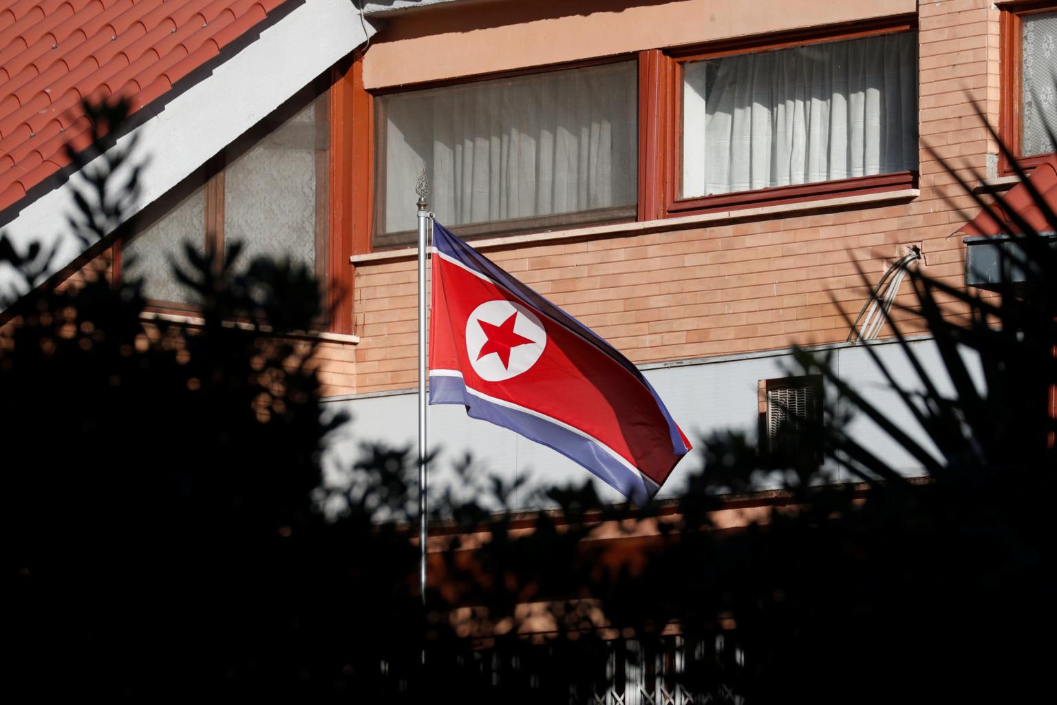 The flag of North Korea flutters in front of its embassy in Rome, Italy, on Jan 3, 2019.