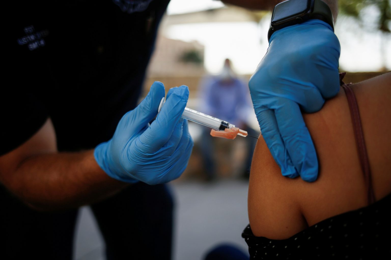A healthcare worker administers a Covid-19 vaccine at a US centre in El Paso, Texas.