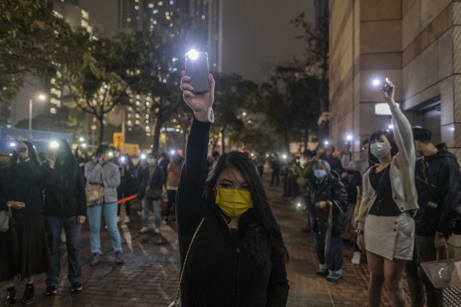 Supporters of detained pro-democracy activists outside West Kowloon court in Hong Kong, March 4, 2021.