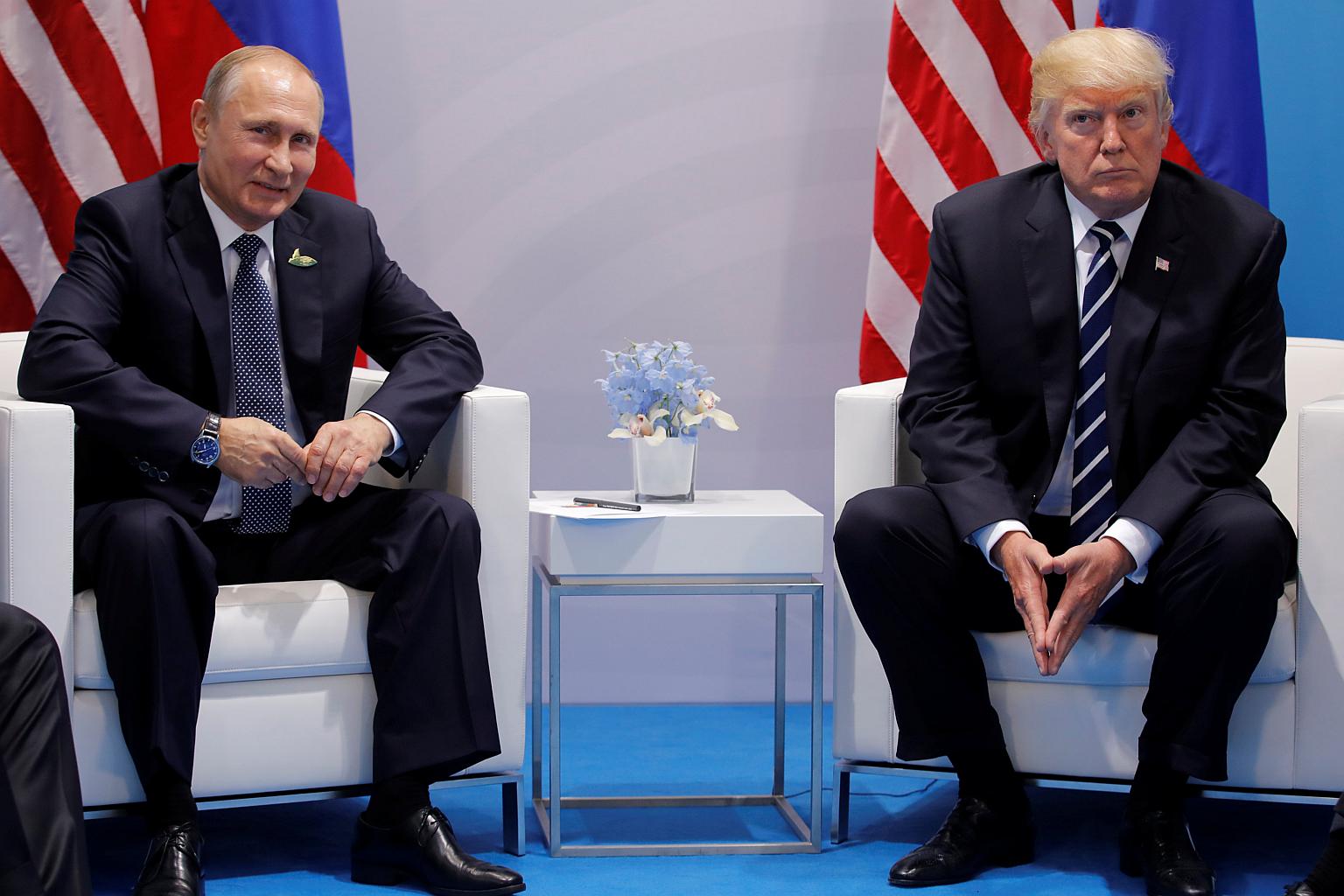 US President Donald Trump meets with Russian President Vladimir Putin during their bilateral meeting at the G20 summit in Hamburg, Germany on July 7, 2017.