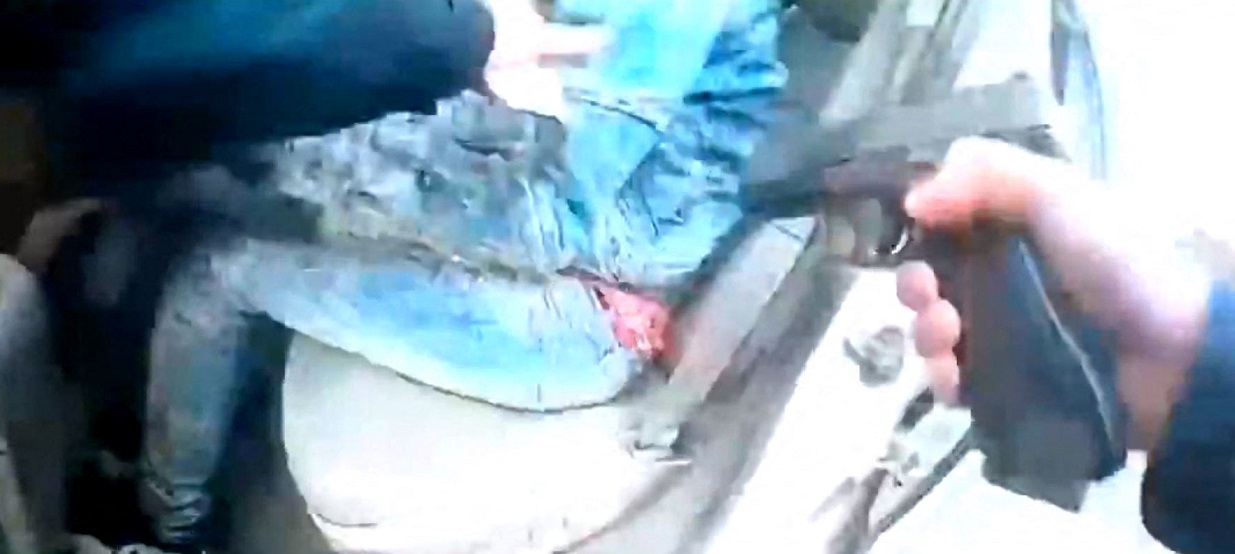 A video frame grab taken from bodycam footage shows the moment Daunte Wright was shot.