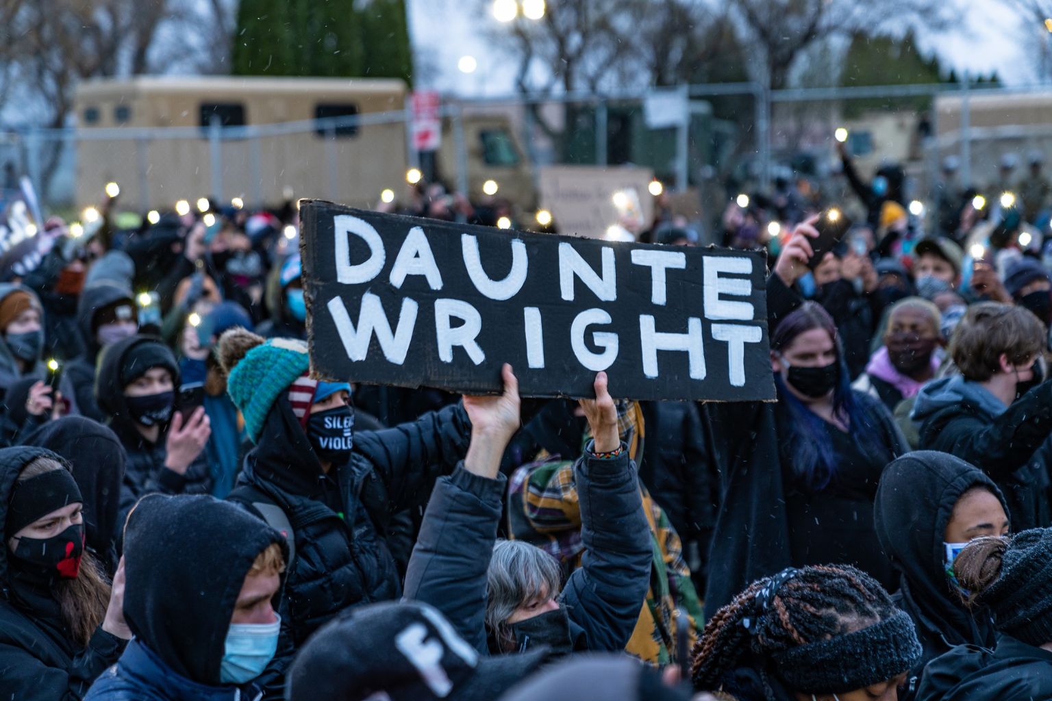 People protest over the death of Daunte Wright outside the Brooklyn Centre Police Department on April 13, 2021.
