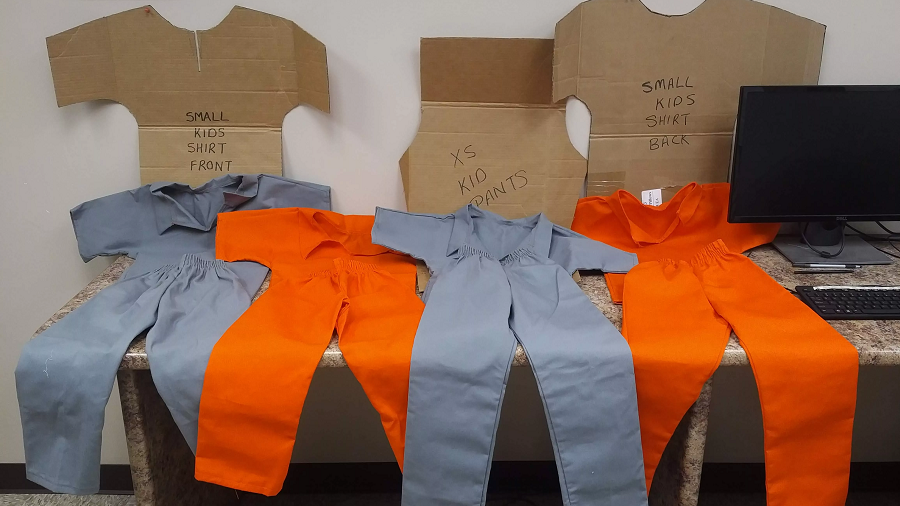 Tiny prison inmates' uniforms were made for the children, who were barricaded in tiny rooms without access to water or toilets.