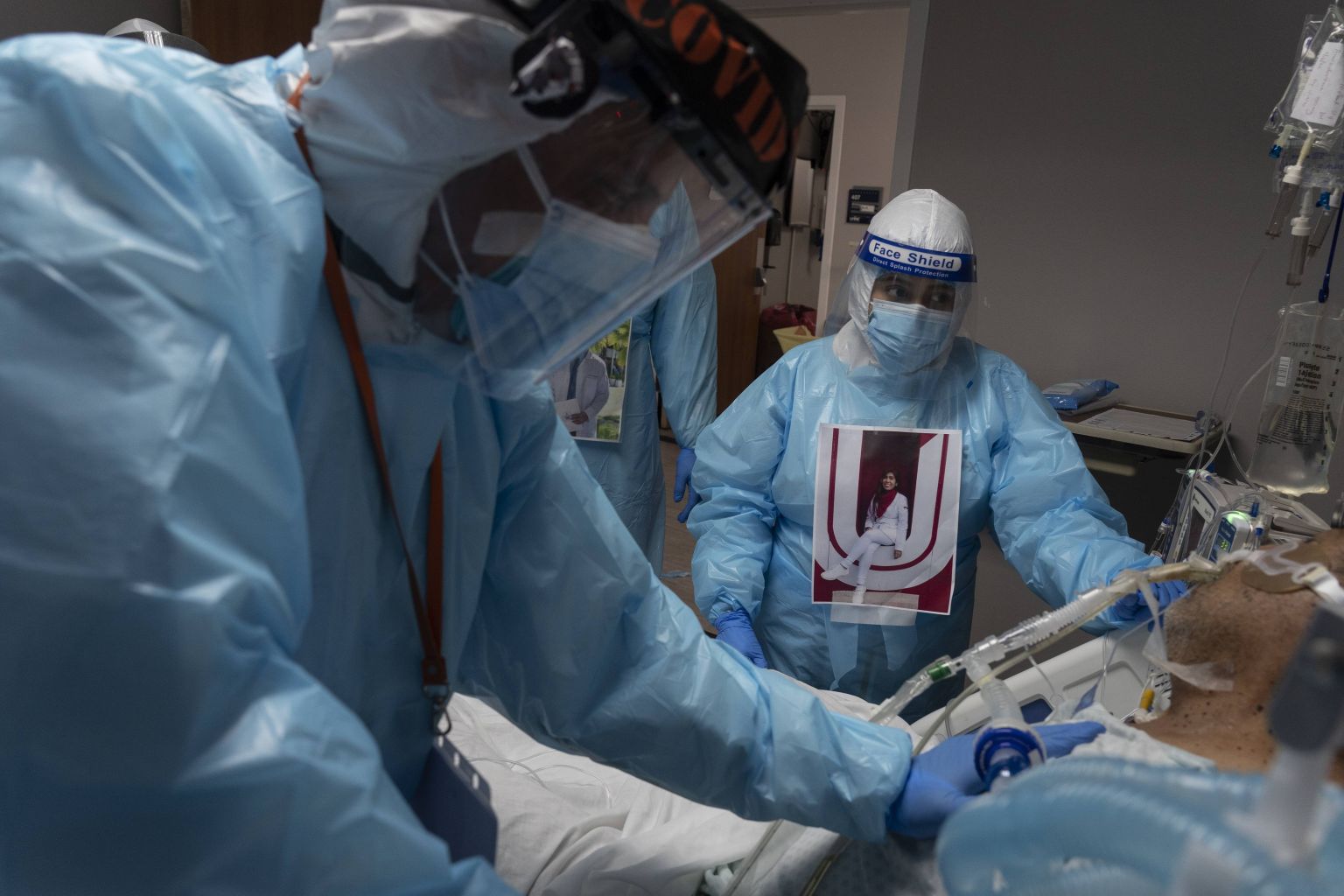 Medical staff examine a patient suffering from Covid-19 in Houston, Texas.