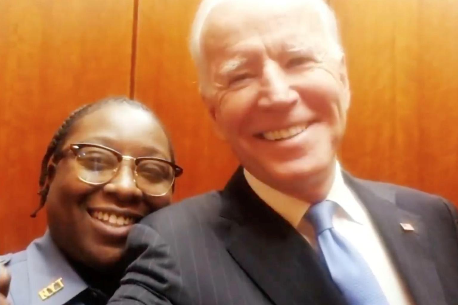 Joe Biden's easy rapport with security guard Jacquelyn Brittany struck a chord on social media.