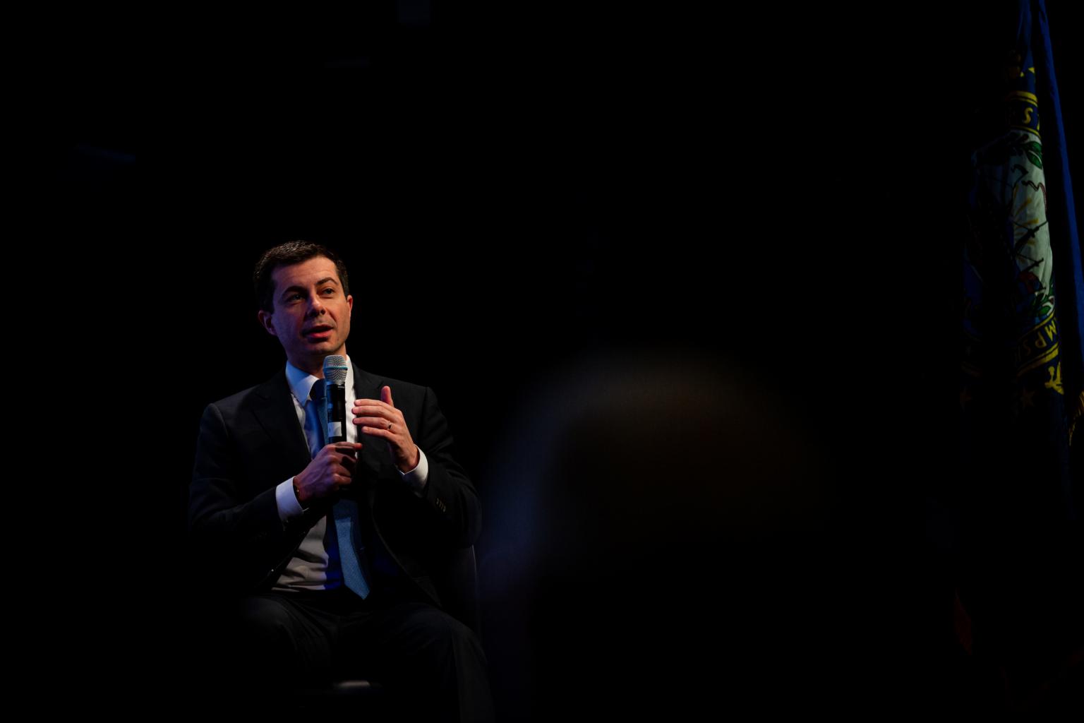 Pete Buttigieg introduces himself during the NH Youth Climate and Clean Energy Town Hall in US, on Feb 5, 2020.