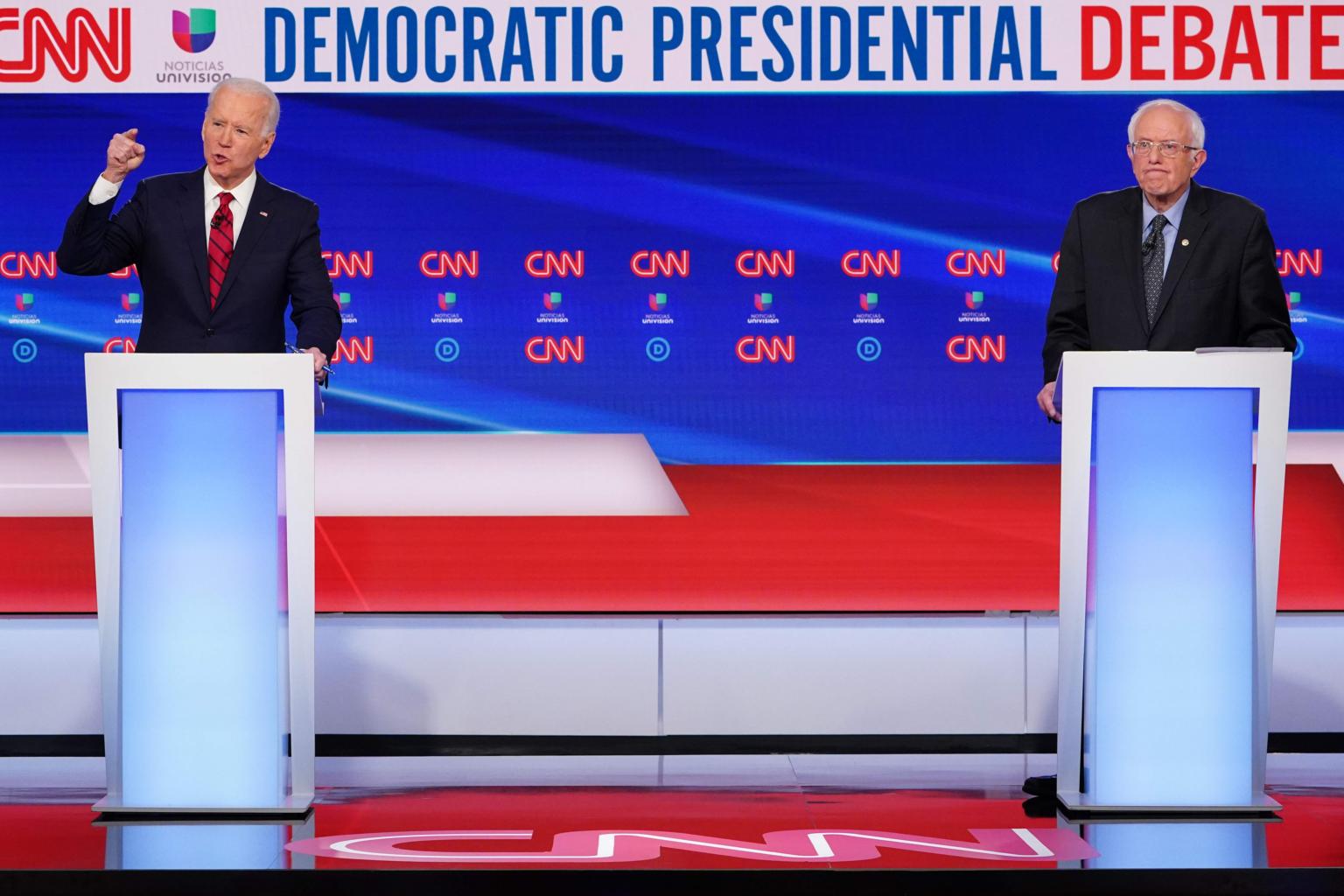 US Democratic Presidential candidates Joe Biden and Bernie Sanders during a debate on Washington on March 15, 2020.