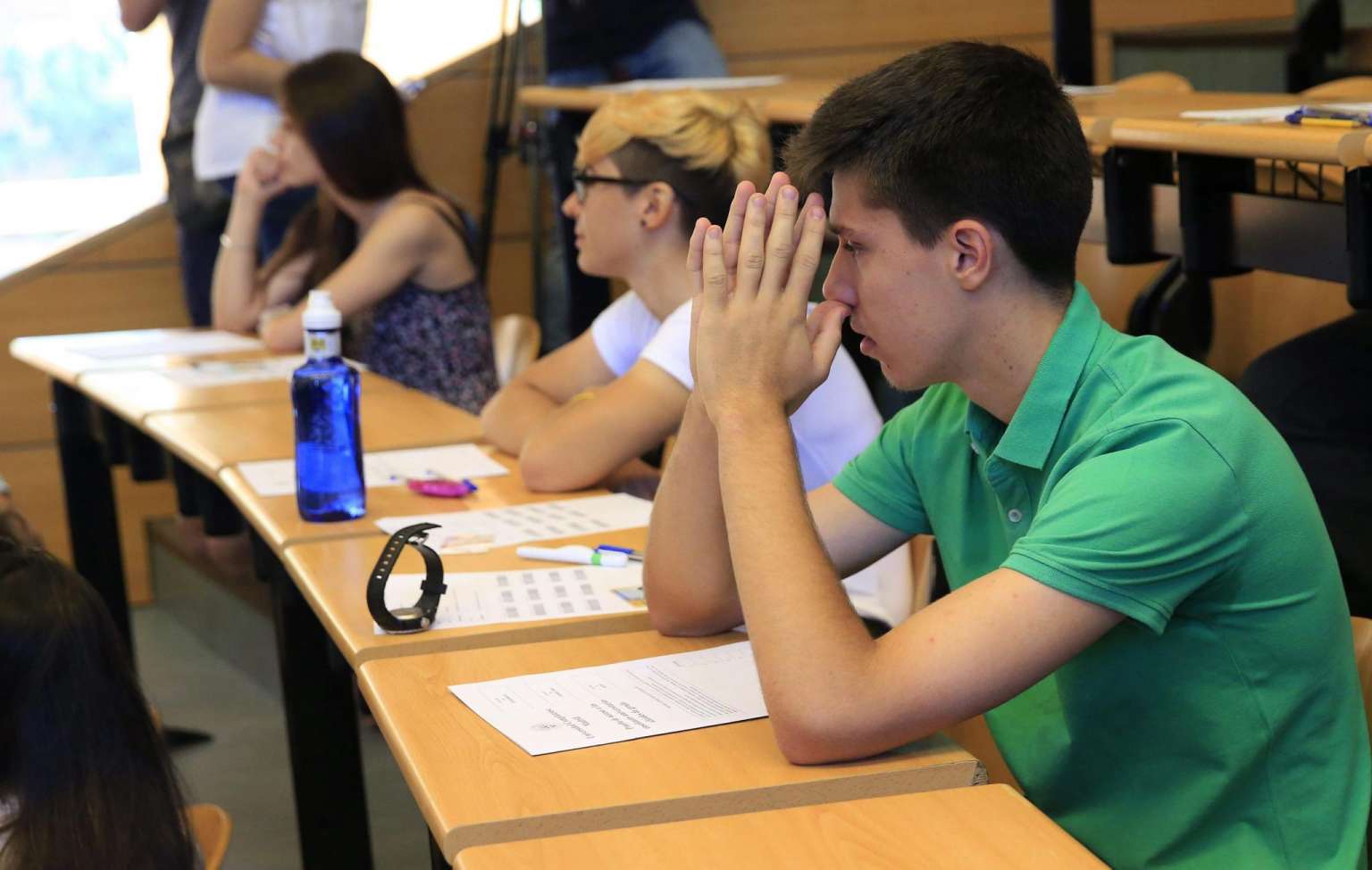 Students waiting for the start of University access exams at the Complutense campus in Madrid.