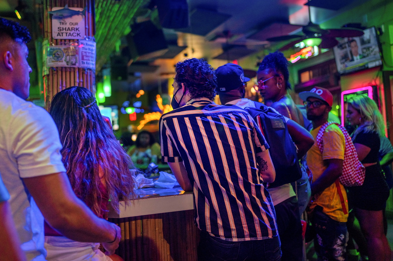 Masked and unmasked revellers at a bar in New Orleans, Louisiana, on July 23, 2021.