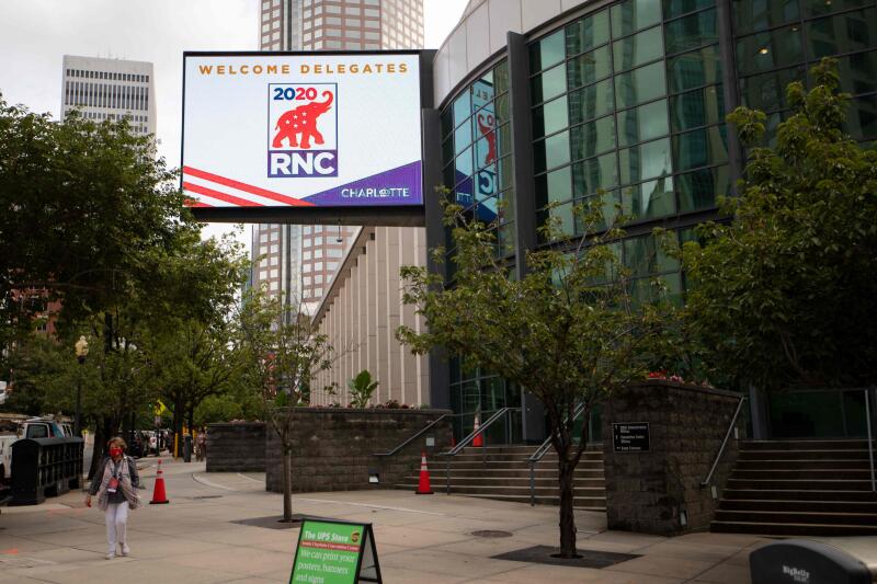 A sign for the 2020 Republican National Convention is seen in Charlotte, North Carolina, on Aug 22, 2020.