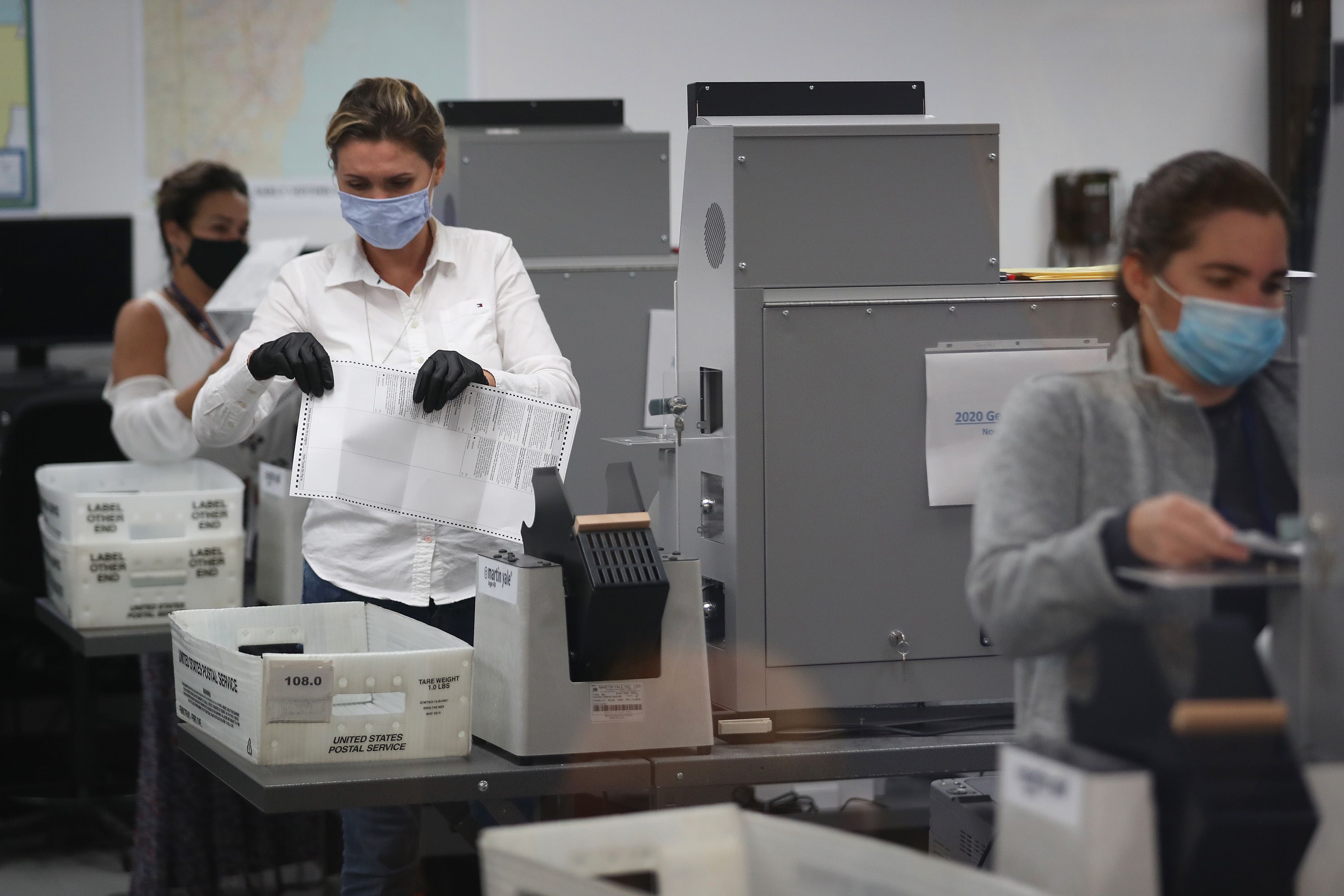 <p>DORAL, FLORIDA- NOVEMBER 03: Workers at the Miami-Dade County Elections Department work on tabulating the Vote by Mail ballots that have been returned on November 03, 2020 in Doral, Florida. After a record-breaking early voting turnout, other Americans headed to the polls on Election Day proper to cast their vote for U.S. President Donald Trump or Democratic nominee Joe Biden. Joe Raedle/Getty Images/AFP