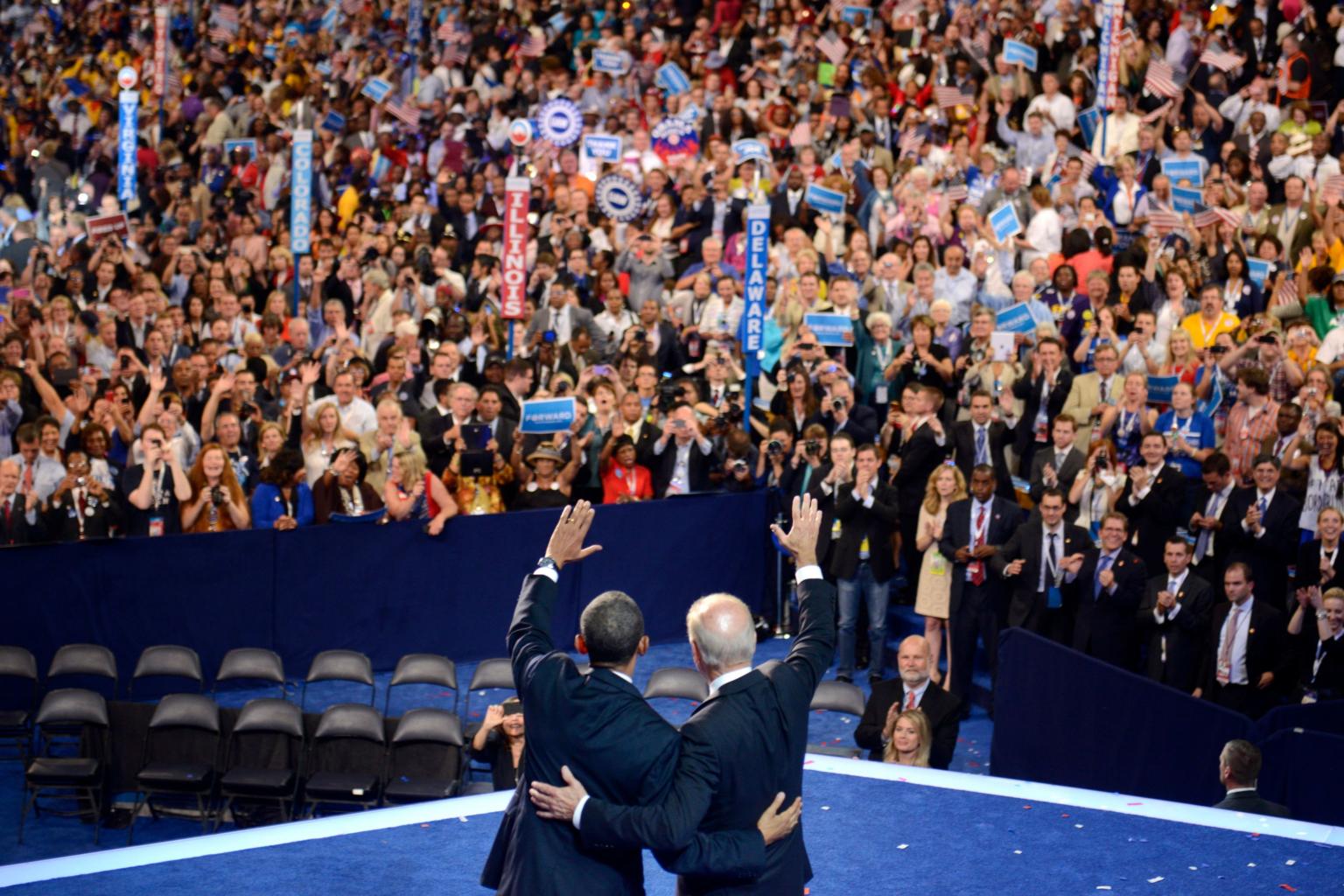 Barack Obama (left) and Joe Biden at the Democratic National Convention in Charlotte, North Carolina, on Sept 6, 2012.