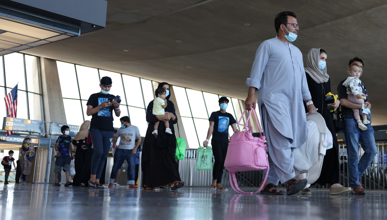 Afghan refugees arrive at Dulles International Airport in Virginia on Sept 2, 2021.