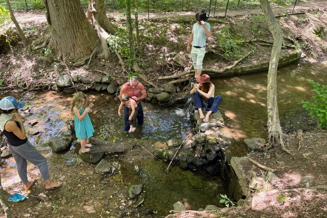 Mr Kennedy said in the social media post that he had gone for the swim in Rock Creek during a Mother’s Day hike in Dumbarton Oaks Park with his family – including his grandchildren, who are also seen in the photos swimming in the contaminated water.