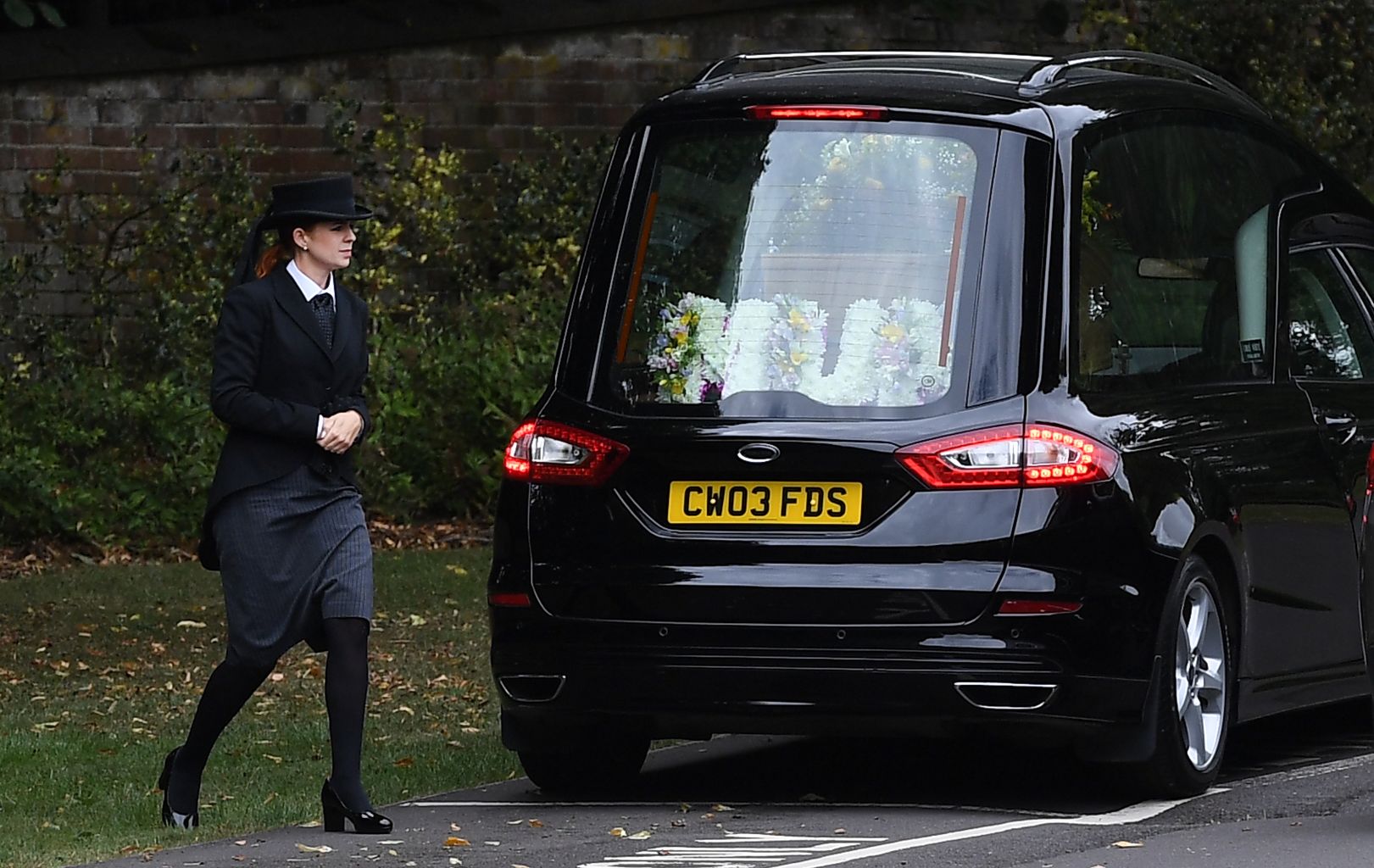 The casket of Novichok victim Dawn Sturgess arrives at Salisbury Crematorium in Salisbury, Wiltshire.