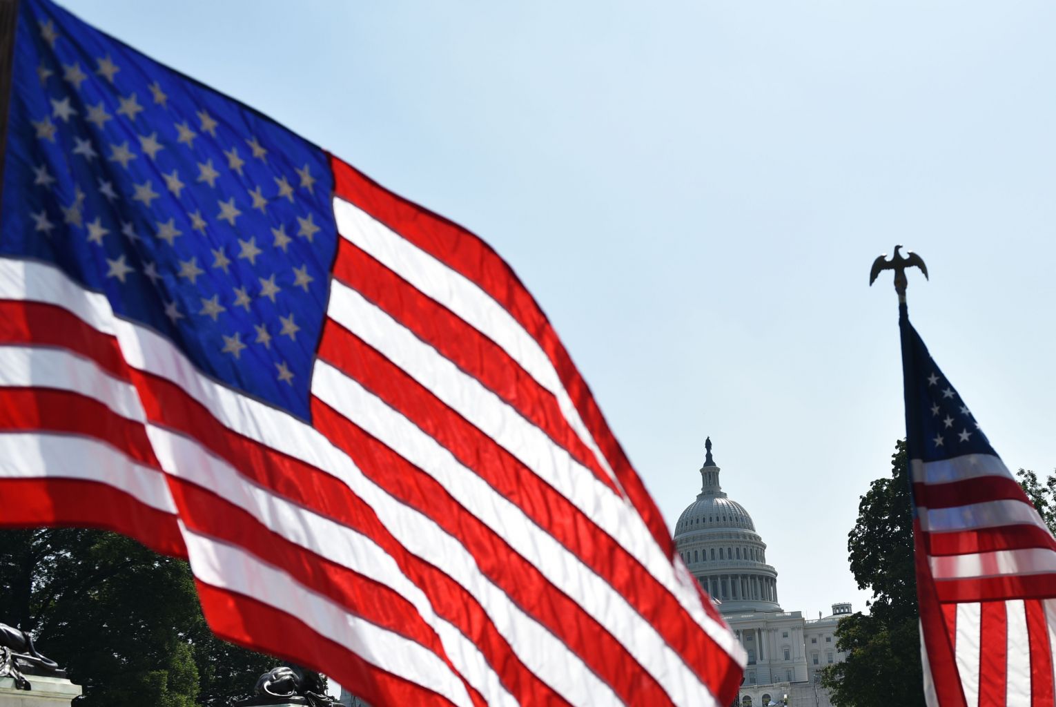 US flags are seen near the Mall in front of the US Capitol in Washington, DC.