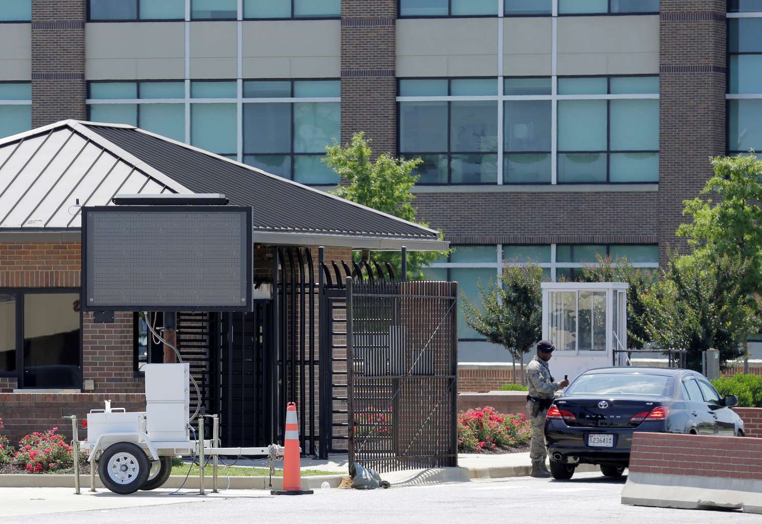 A guard checks cars entering US Joint Base Andrews after it was briefly placed on lockdown.