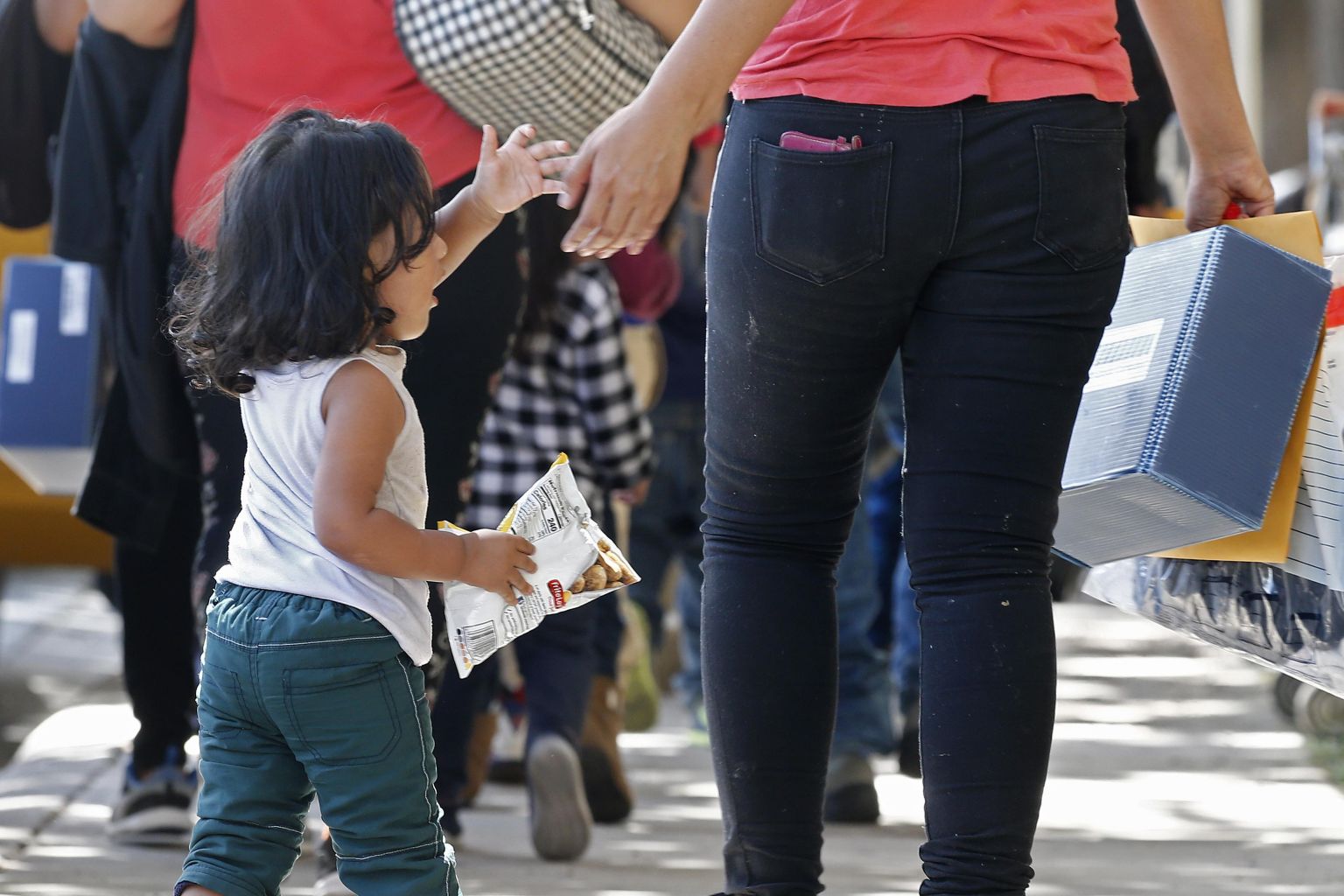 Migrant families being processed before they are removed in Texas, US, on 26 June 2018. More than 2,300 migrant children were separated from their parents when all adults who crossed the border illegally are prosecuted.