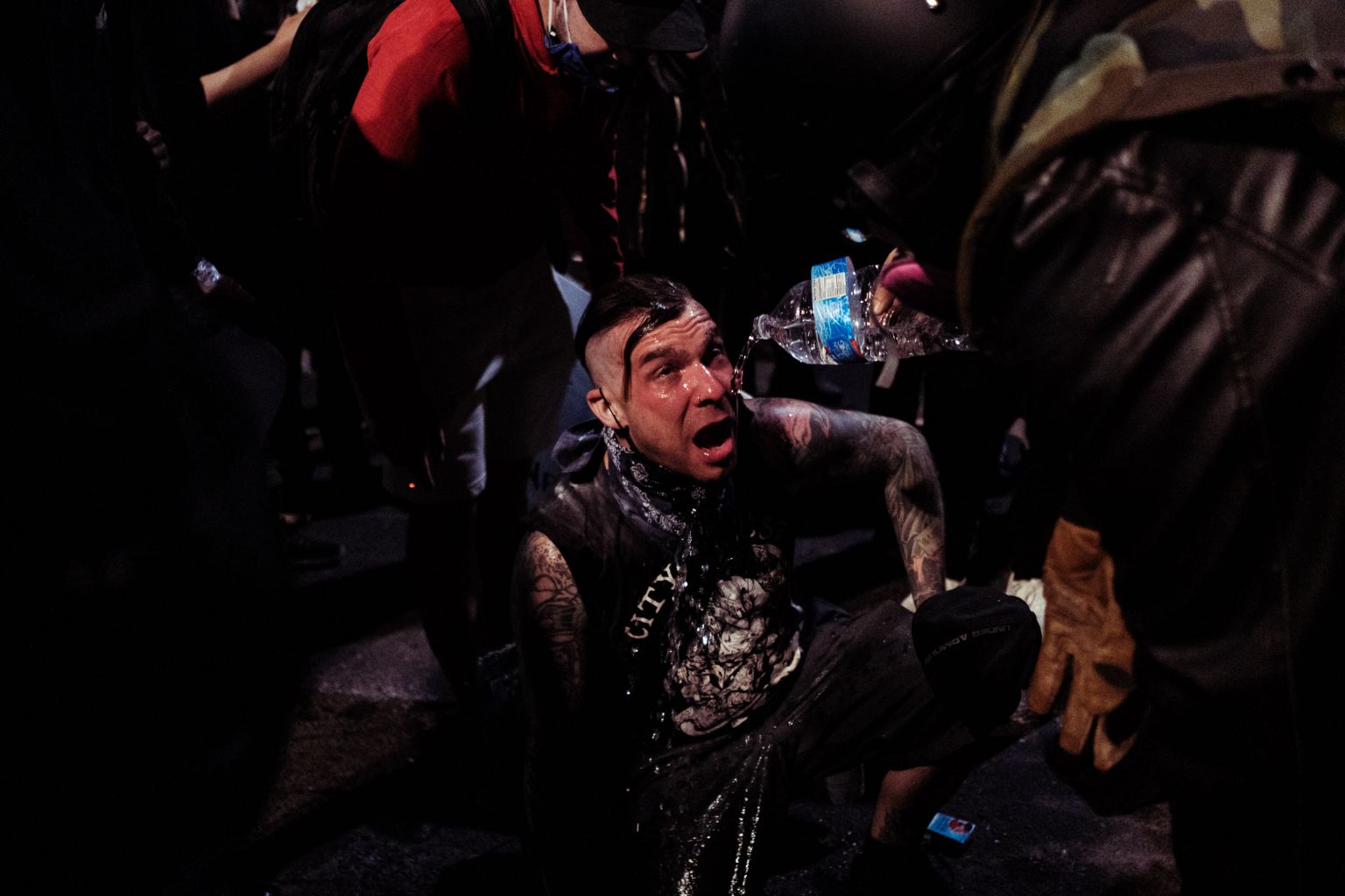 A protester suffering from the effects of tear gas on July 22, 2020, in Portland, Oregon.