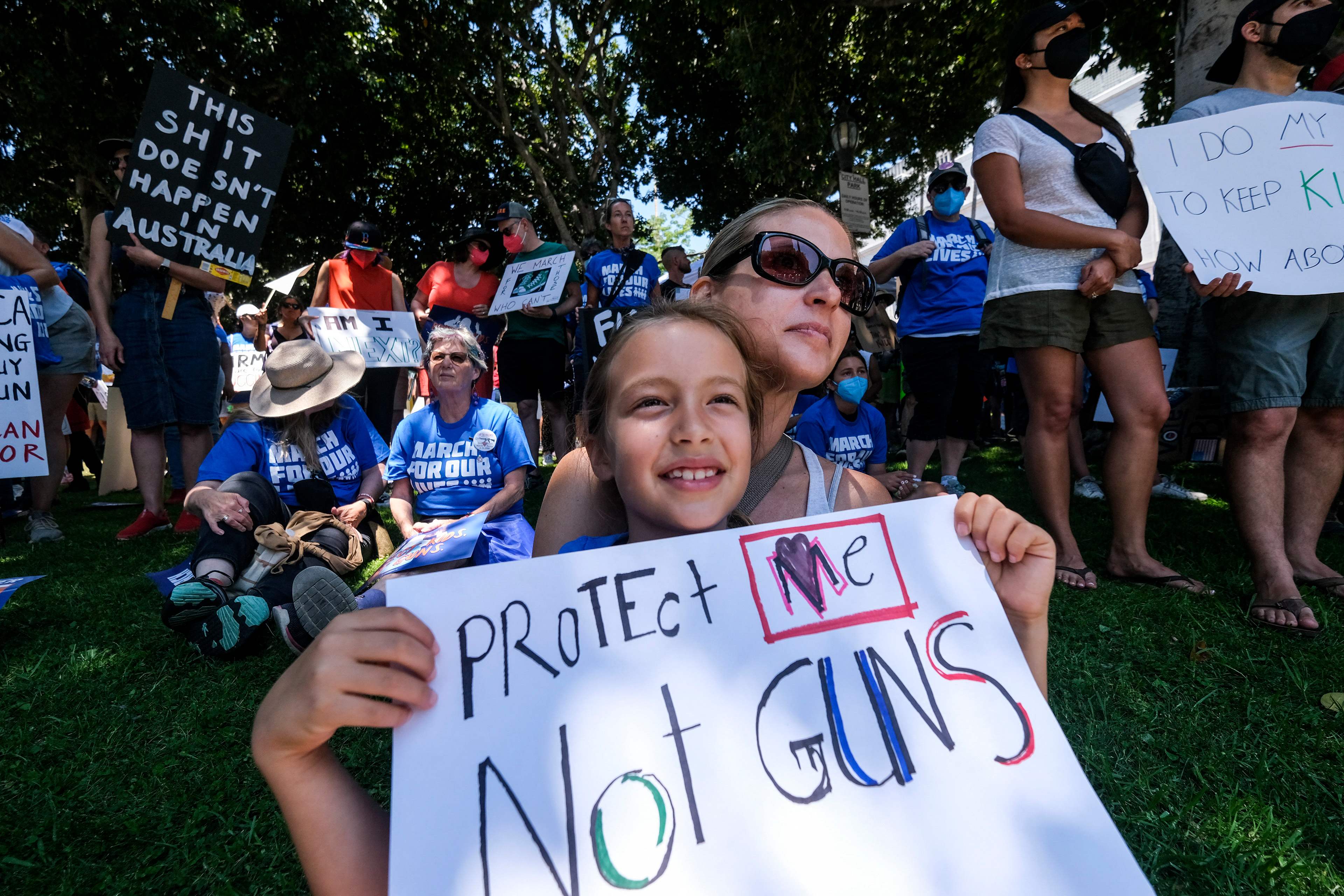 Demonstrators join the "March for Our Lives" rally in Los Angeles, California, on June 11, 2022.