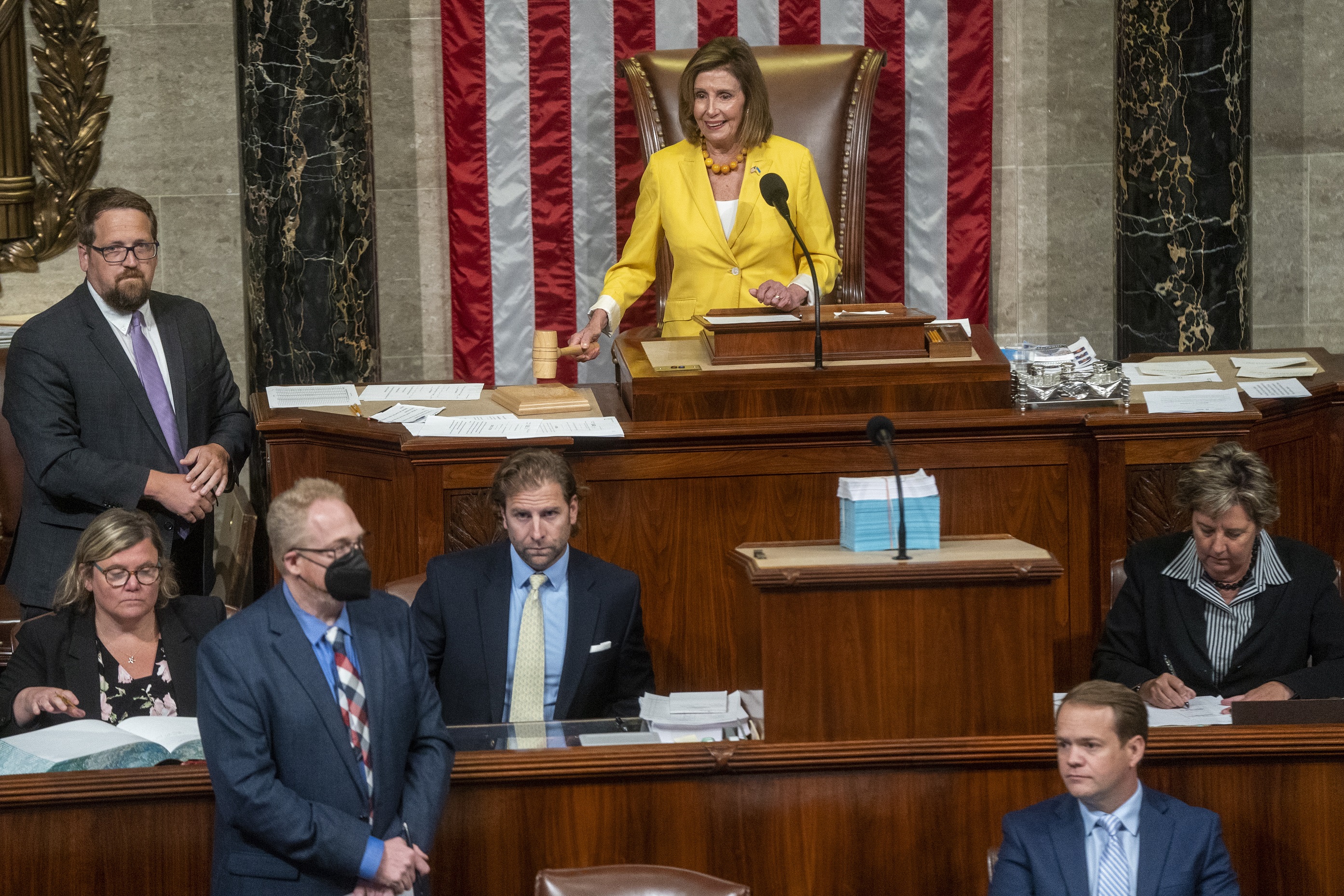 Speaker of the House Nancy Pelosi presides over the final passage of the Inflation Reduction Act.