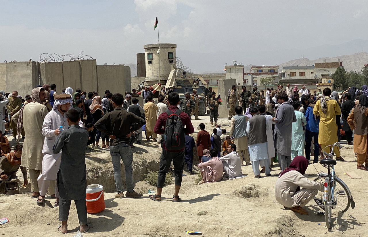 Afghans gather outside the Hamid Karzai International Airport to flee the country on Aug 17, 2021.