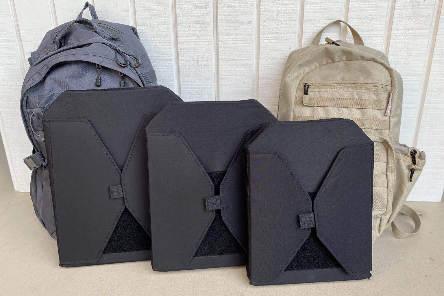 Escape Armour offers two different products: A foldable vest that comes in three sizes and a standalone shield that makes any backpack bulletproof.