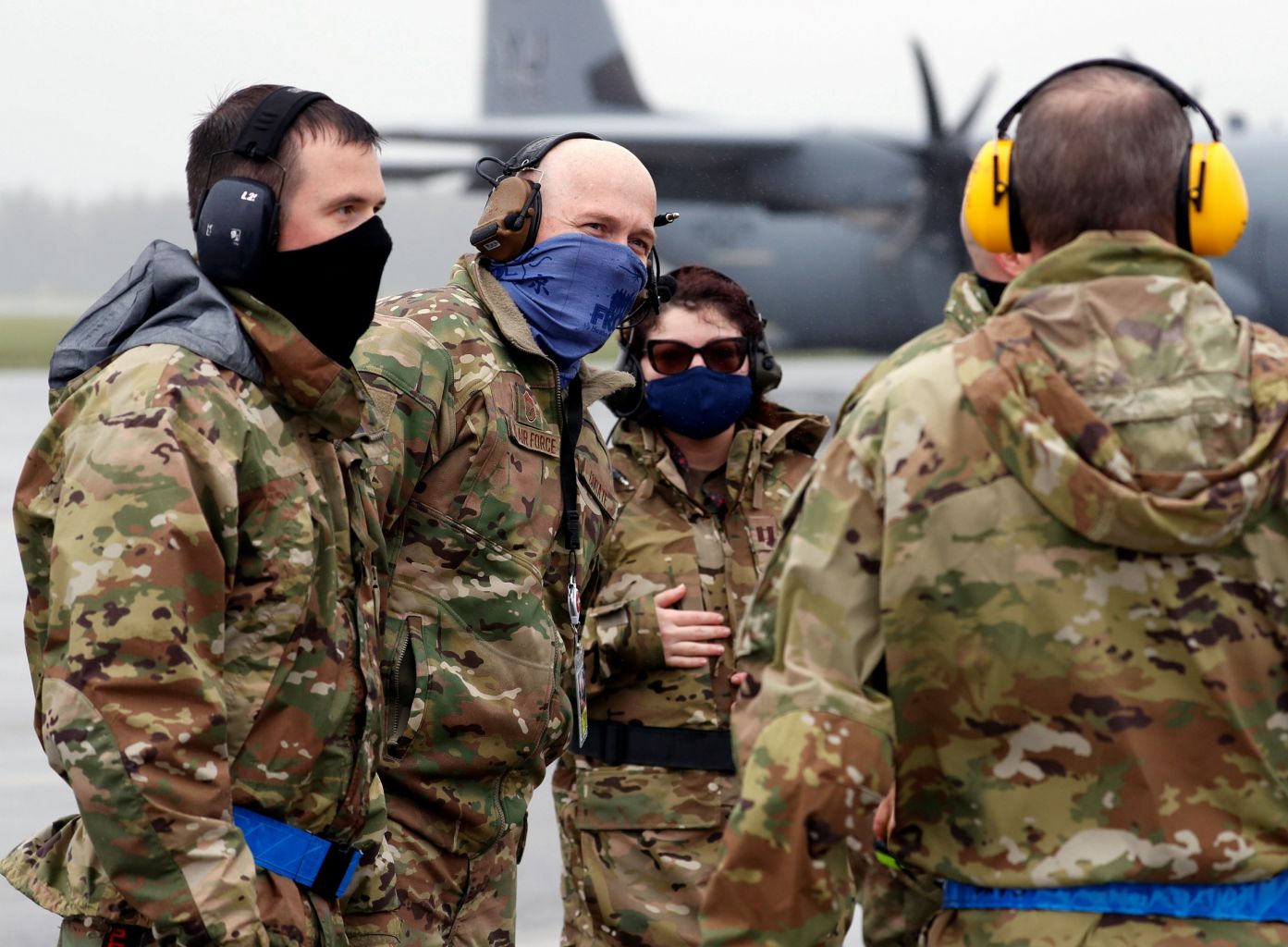 US soldiers are seen during a military drill amid the coronavirus disease outbreak in Japan, May 21, 2020.
