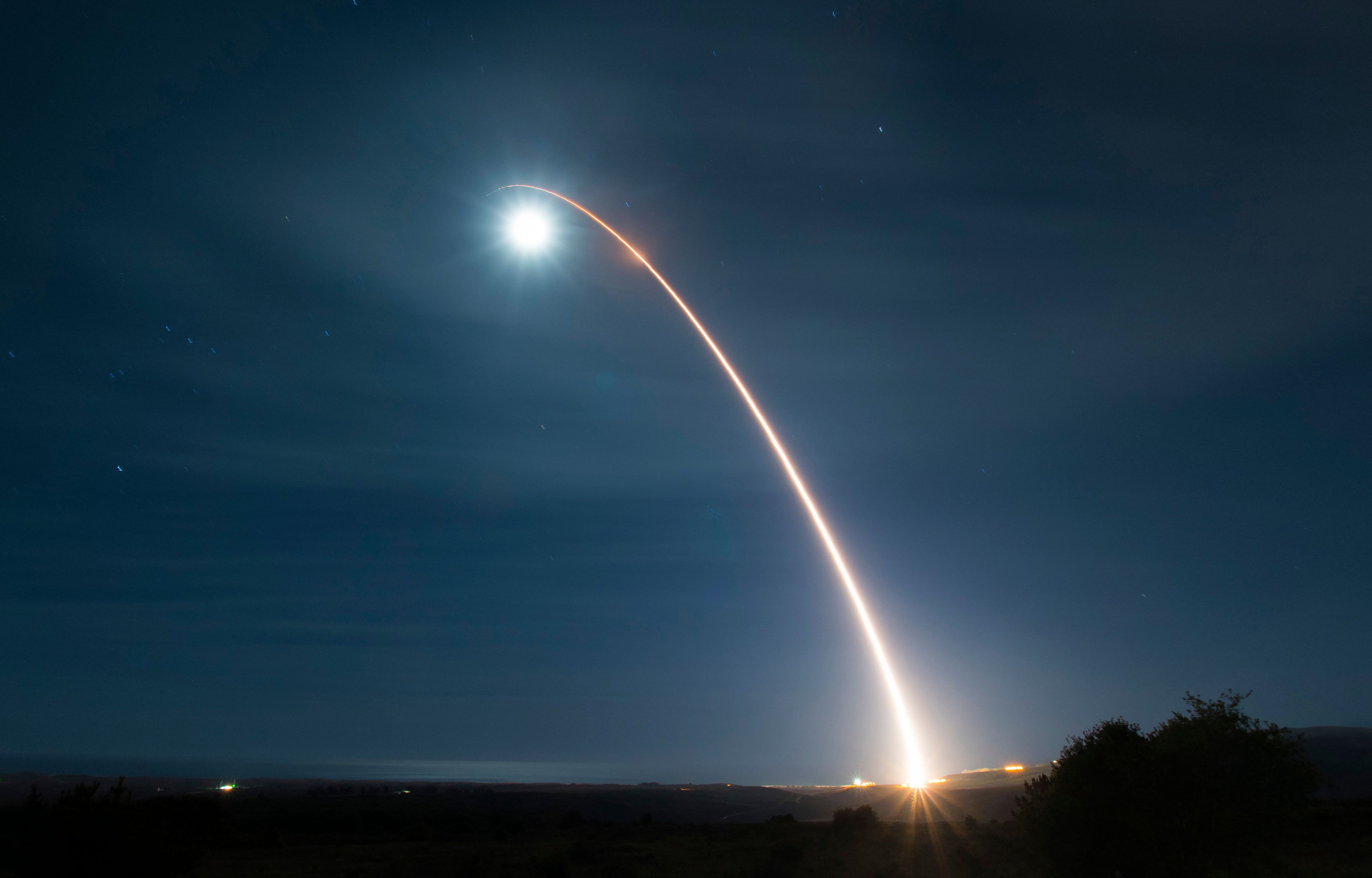 A photo from Feb 5, 2020, shows an unarmed intercontinental ballistic missile during a developmental test at an air base in California.