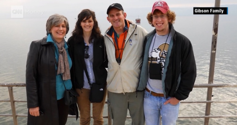 A screenshot from the CNN report on US pastor John Gibson's suicide, showing the Gibson family.