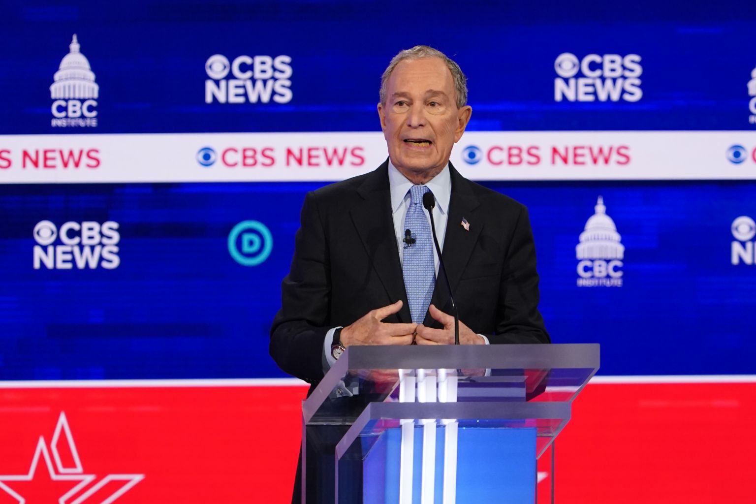 Businessman Michael Bloomberg speaks during the Democratic presidential debate at the Gaillard Center in Charleston, South Carolina, on Feb 25, 2020.