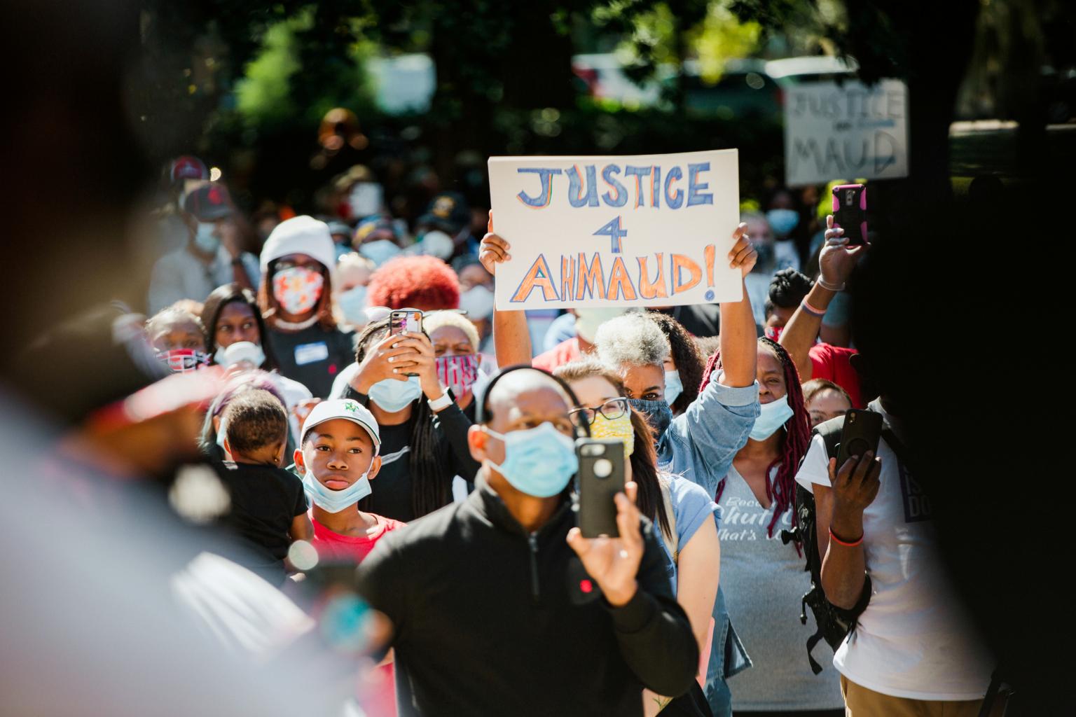"I just want justice for Ahmaud," Quintina Johnson, a 47-year-old waiter who was one of about 350 protesters in front of the Glynn County Courthouse in Brunswick on Friday.