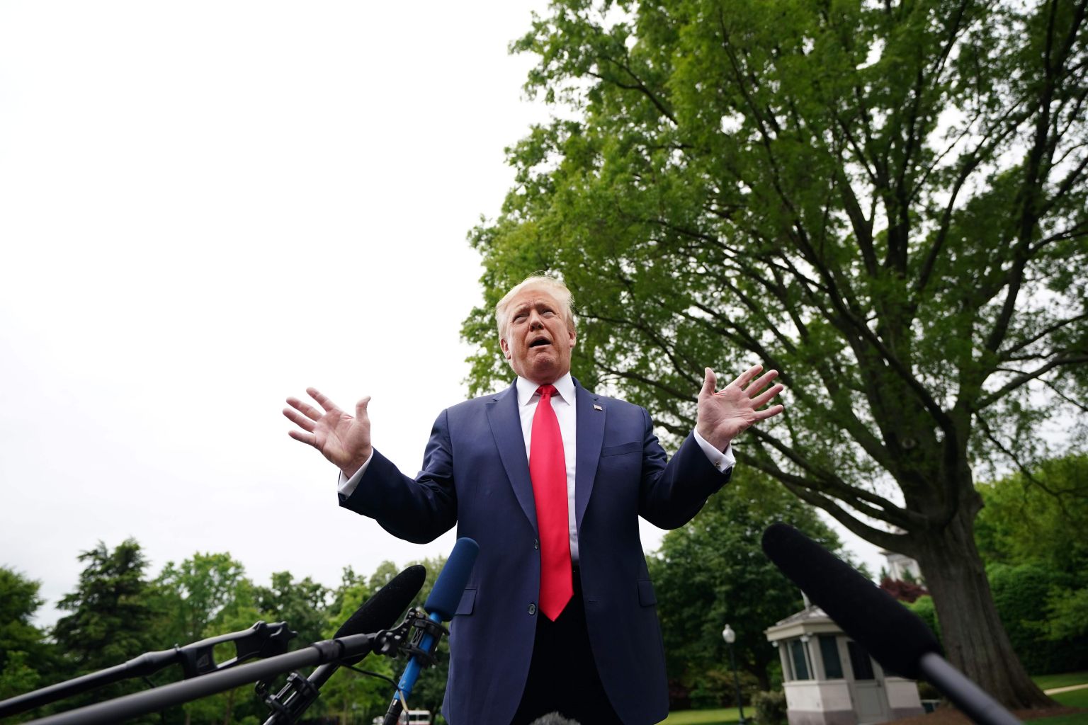 US President Donald Trump speaks to the press as he departs the White House, on May 21, 2020.