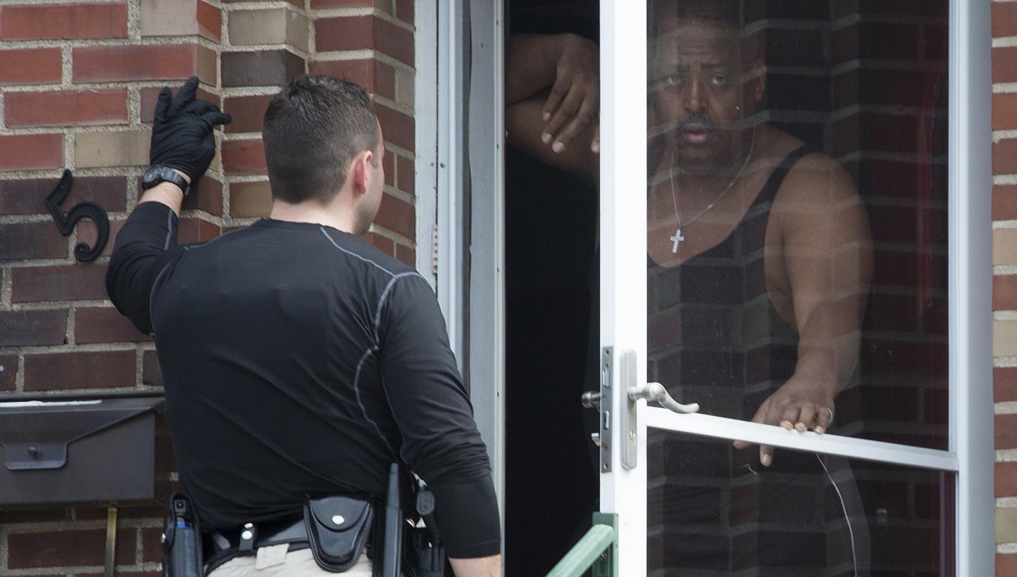 A Swat team hunting for suspects raided a brick bungalow about four blocks from where the shooting happened overnight.