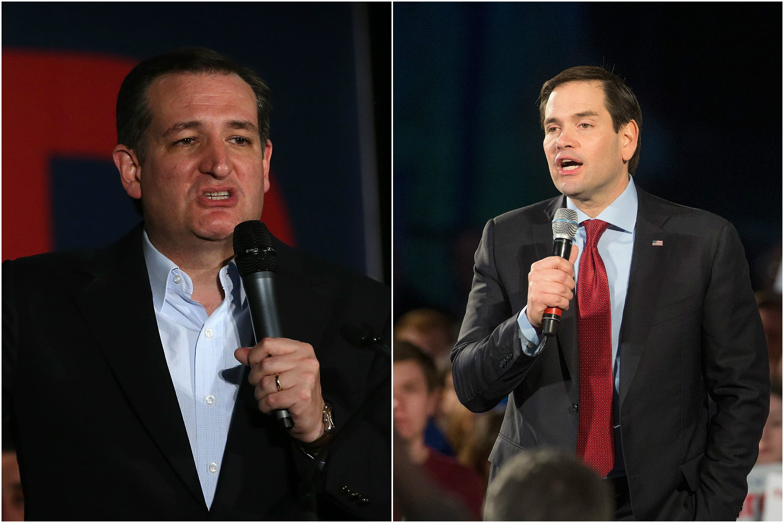 US Republican presidential candidates Ted Cruz (left) and Marco Rubio.