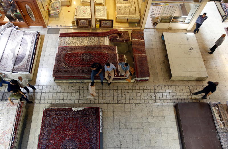 A carpet market at Tehran's old Bazaar where the main economy trades take place, in Tehran, Iran, on Aug 6, 2018.