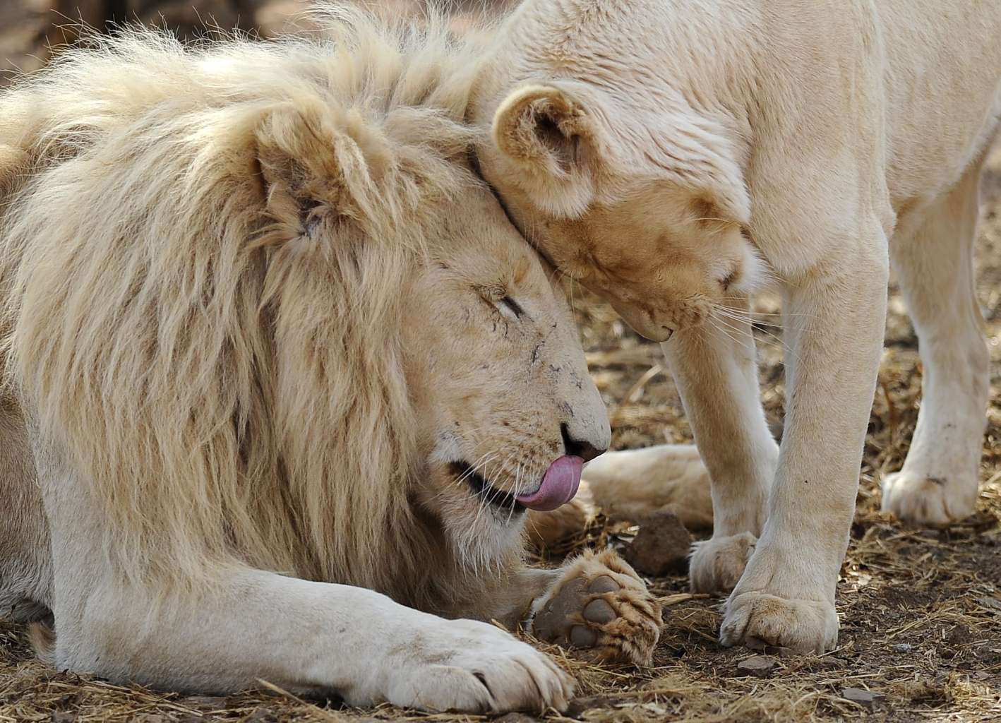 Lions nuzzle at the Entabeni Safari Conservancy in Limpopo, northeast of Johannesburg, South Africa in 2012.