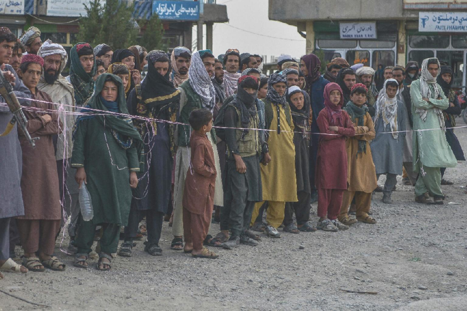 Afghan people queue up to donate blood for earthquake victims being treated at a hospital in Sharan on June 22, 2022.