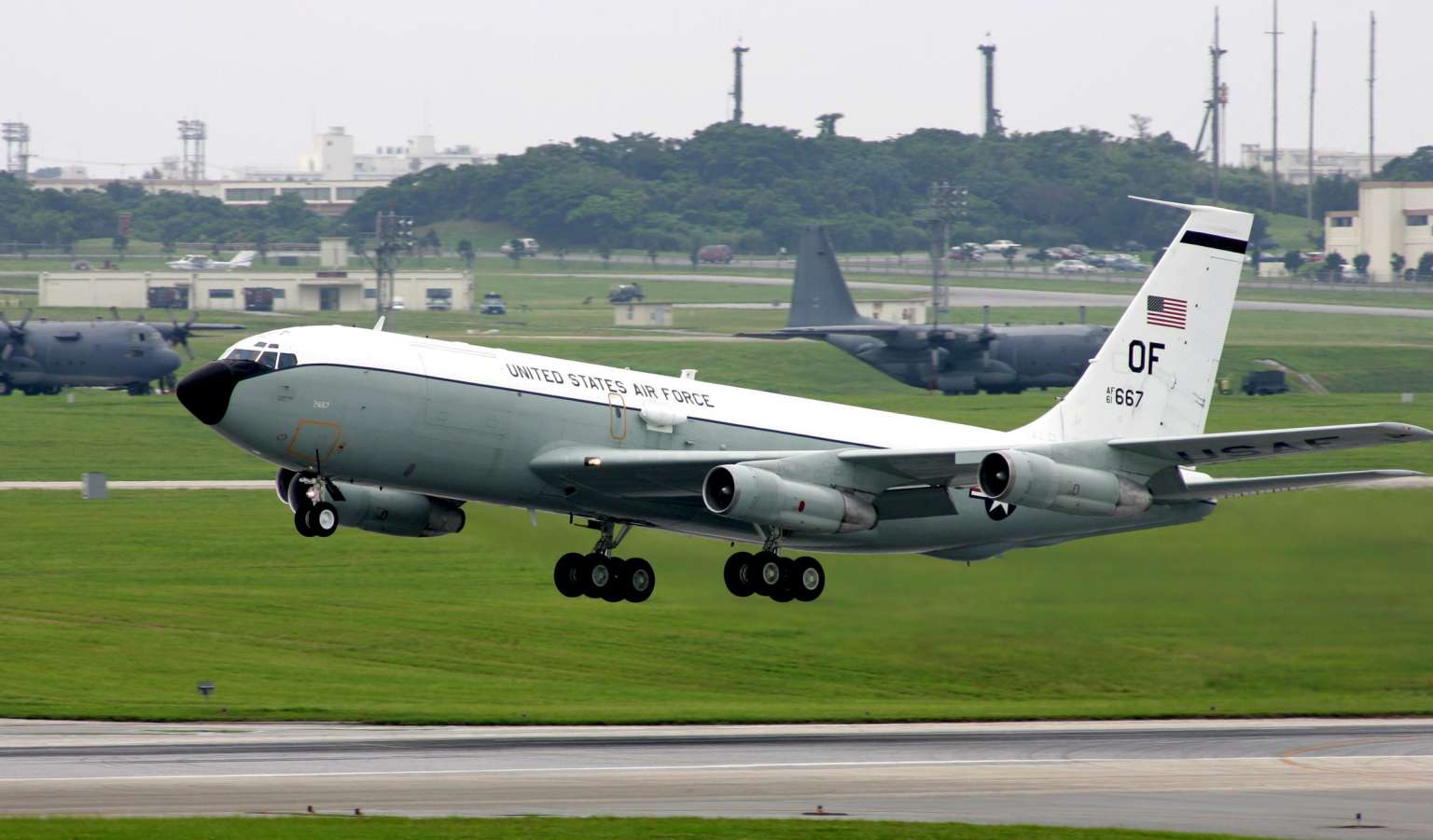 A US Air Force WC-135W Constant Phoenix taking off from Kadena Air Base, Okinawa.