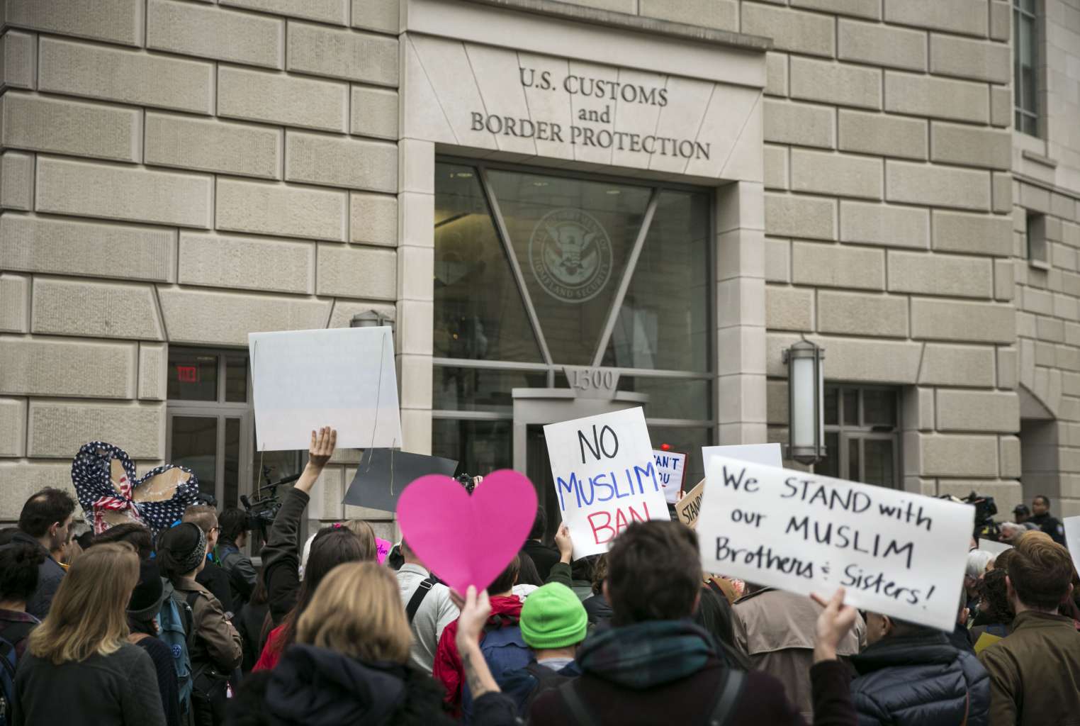Protesters demonstrating against US President Donald Trump's revised travel ban, outside the US Customs and Border Protection headquarters in Washington.