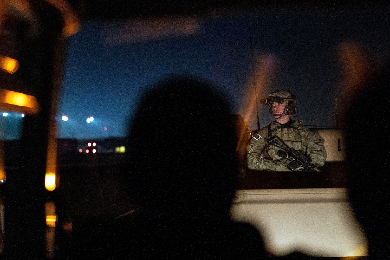 A US soldier during President Donald Trump's visit to Bagram Air Base outside Kabul, Afghanistan, in November 2019.
