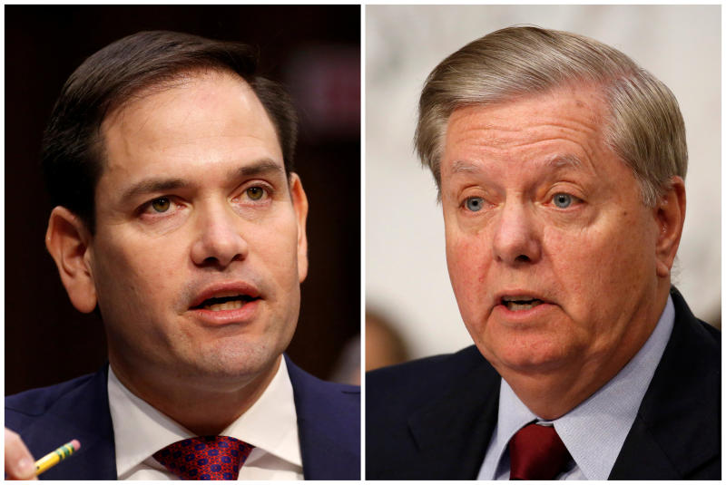 Republican US Senators Marco Rubio (left) and Lindsey Graham in this combination photo from US Senate hearings on Capitol Hill in Washington, US on March 14, 2018 and on June 18, 2018 respectively.