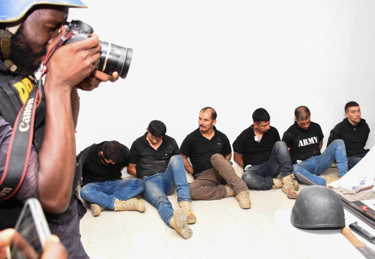 Suspects in the assassination of Haitian president Jovenel Moise are presented to the media by Hatian authorities in Port-au-Price on July 8, 2021.