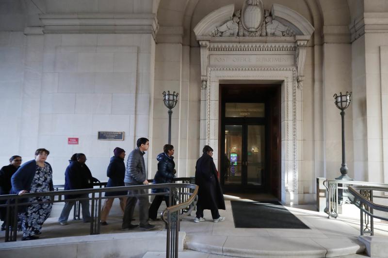 Federal employees return to work at the Environmental Protection Agency headquarters in Washington, DC, on Jan 28, 2019.
