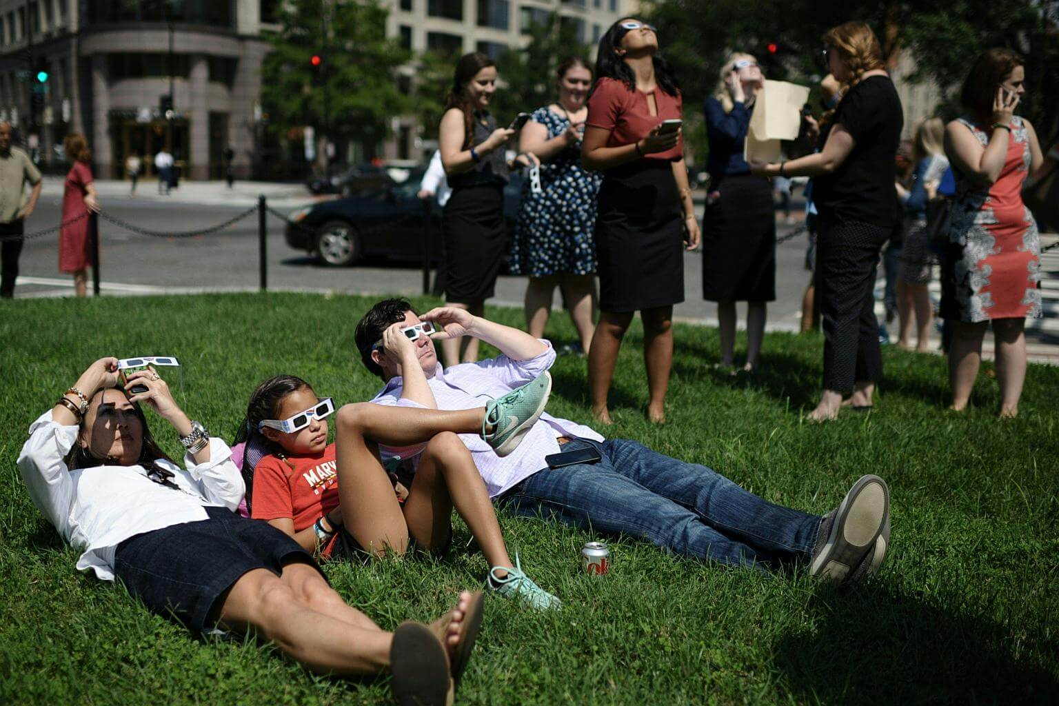 In Washington, DC, hundreds of people waited in long lines outside the National Air and Space Museum, which was distributing more than 20,000 pairs of free viewing glasses. Residents of the nation's capital will see 81 per cent of the sun obscured at the eclipse's peak.